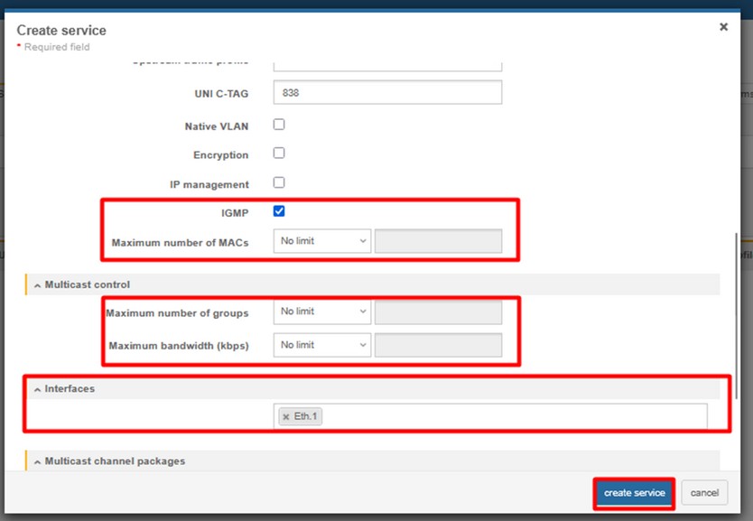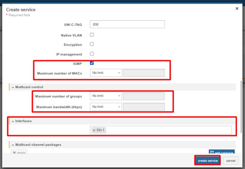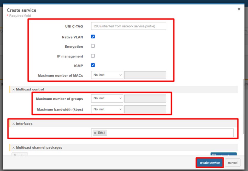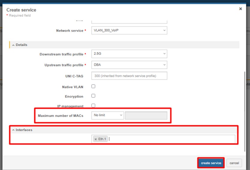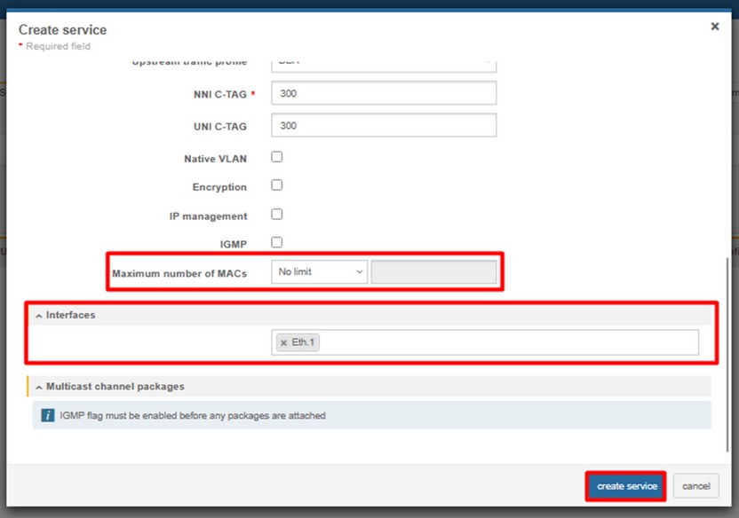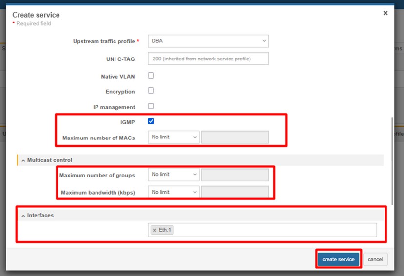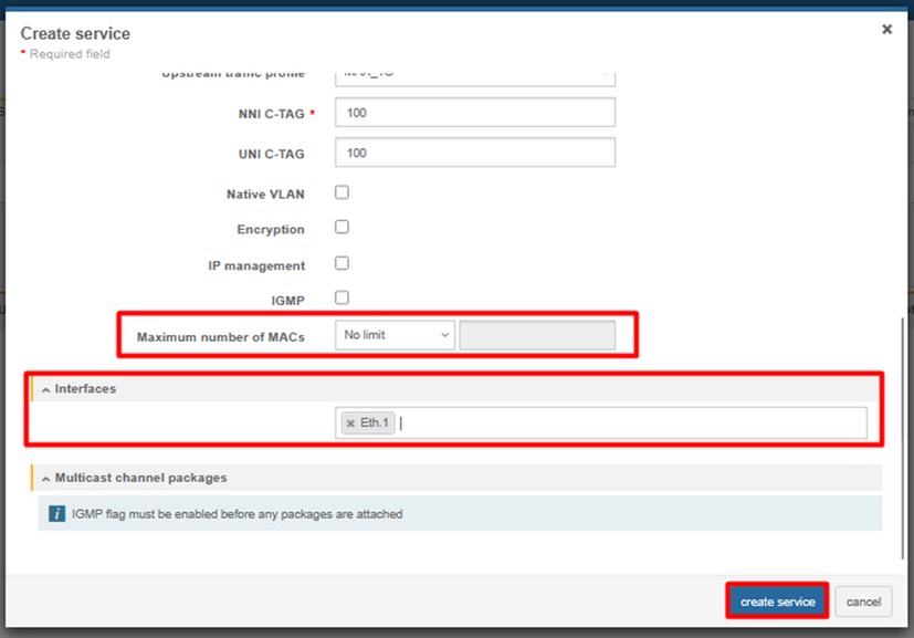 4. Create Ethernet bandwidth profile (CONFIGURATIONS > ETHERNET > ETHERNET BANDWIDTH PROFILE)