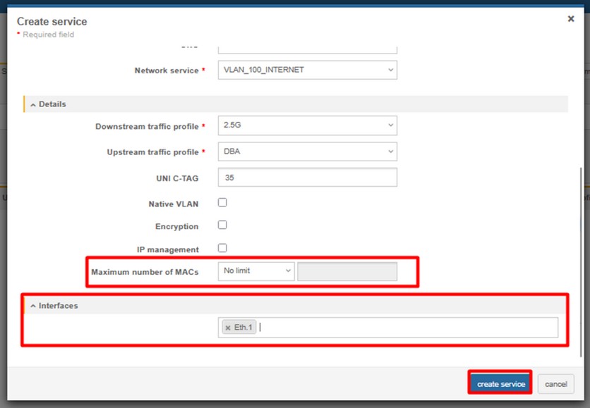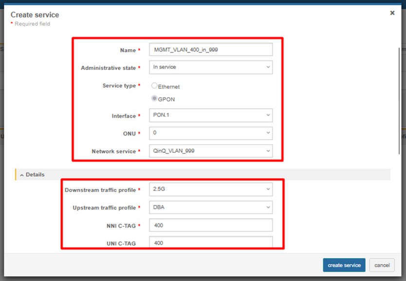 5. Add Network service (S-VLAN) you need (RESOURCES > SERVICES > NETWORK SERVICES)