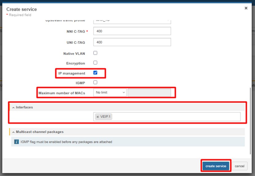 MGMT (C-VLAN 400 in S-VLAN 999) (Optional)