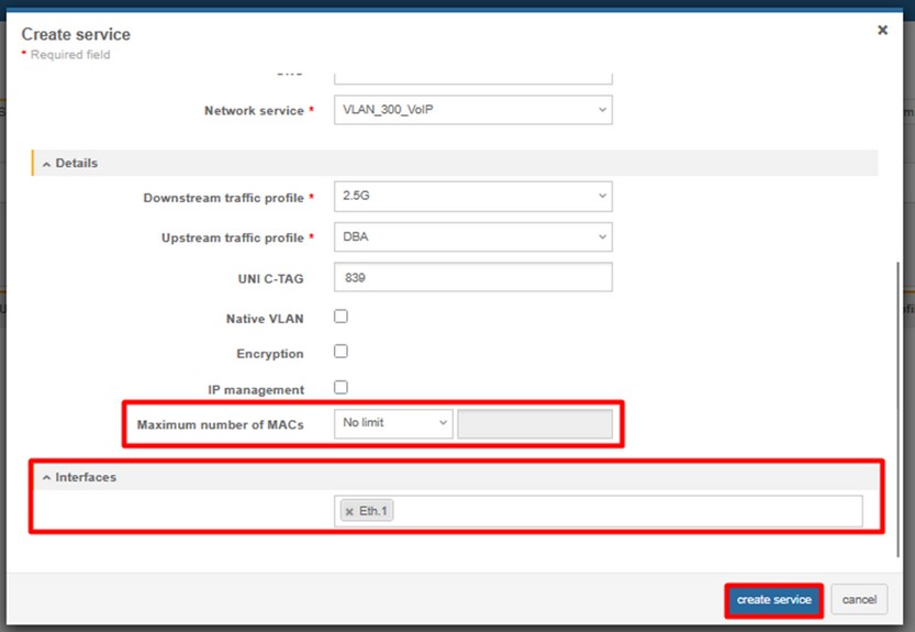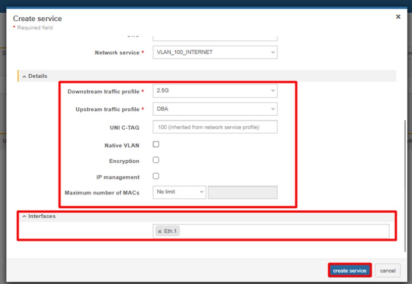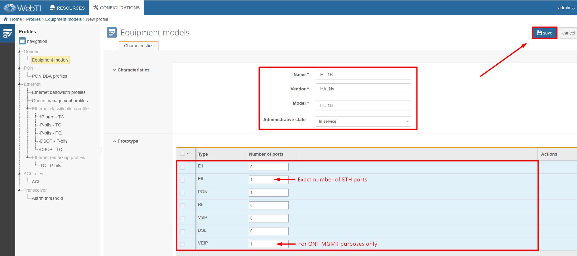NOTE: HL-1B has one ETH 2.5G port, so there is need to setup ethernet bandwidth profile with higher EIR value than in profile named *1G* to match ETH 2.5G bandwidth.