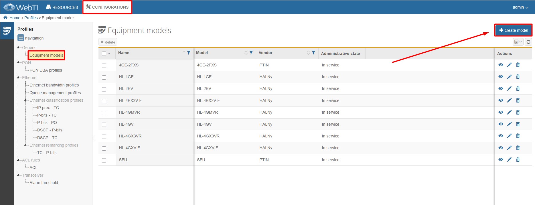 (CONFIGURATIONS > GENERIC > EQUIPMENT MODELS > CREATE MODEL)