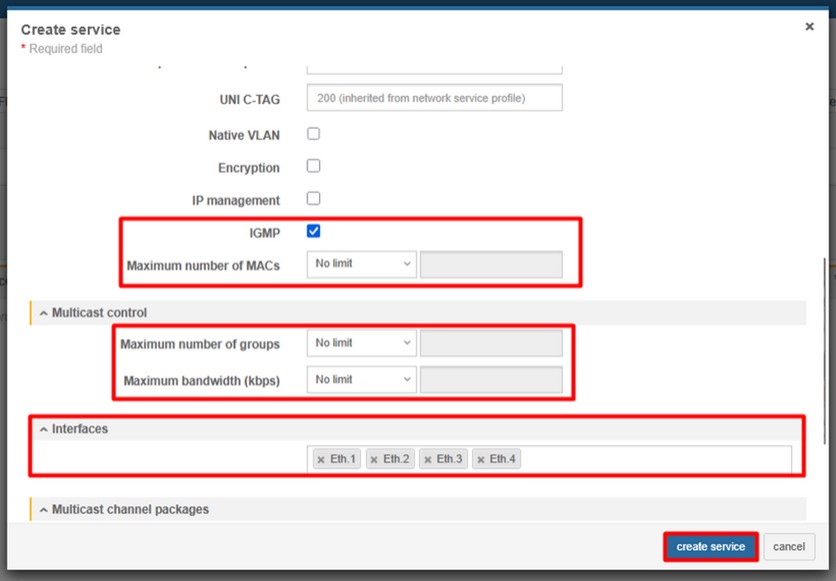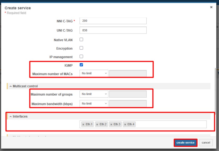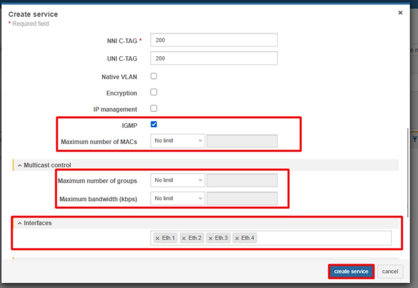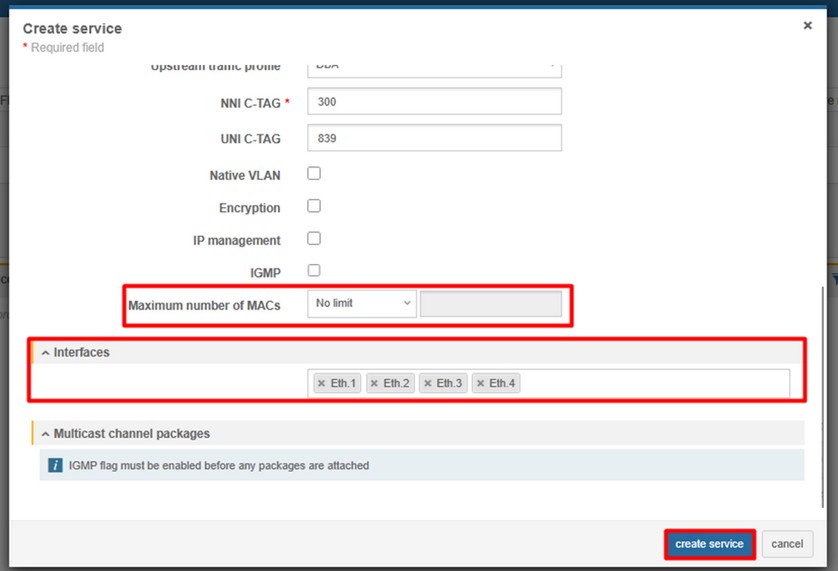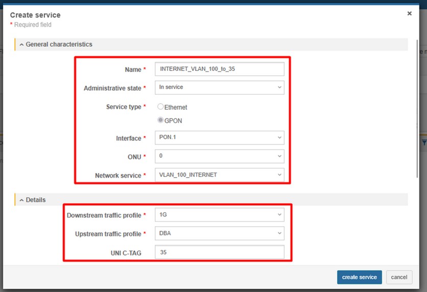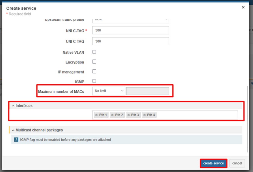 4. Create Ethernet bandwidth profile (CONFIGURATIONS > ETHERNET > ETHERNET BANDWIDTH PROFILE)
