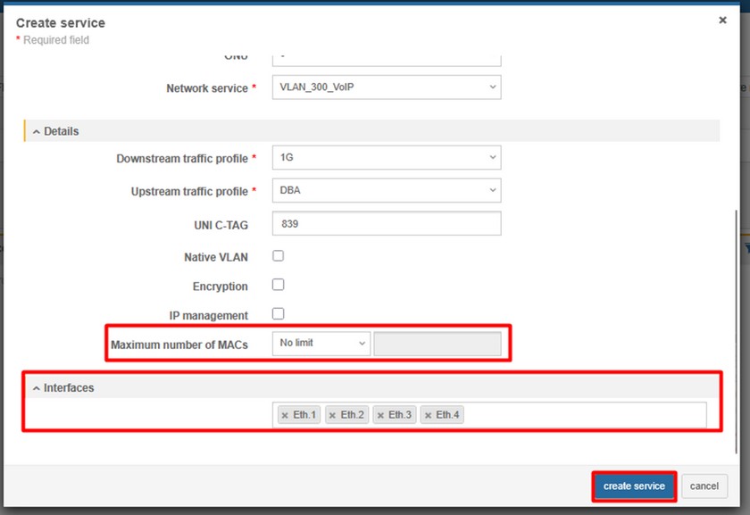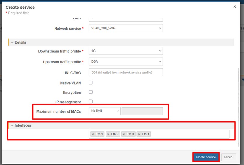 - VoIP - put exact number of POTS ports of the ONT (HL-4GV used in this example has 2 POTS ports),