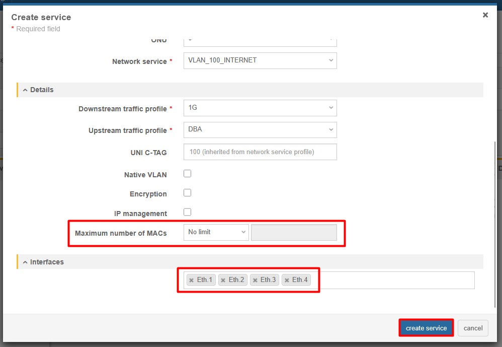 - ETH – put exact number of ETH ports of the ONT (HL-4GV used in this example has 4 ETH ports),