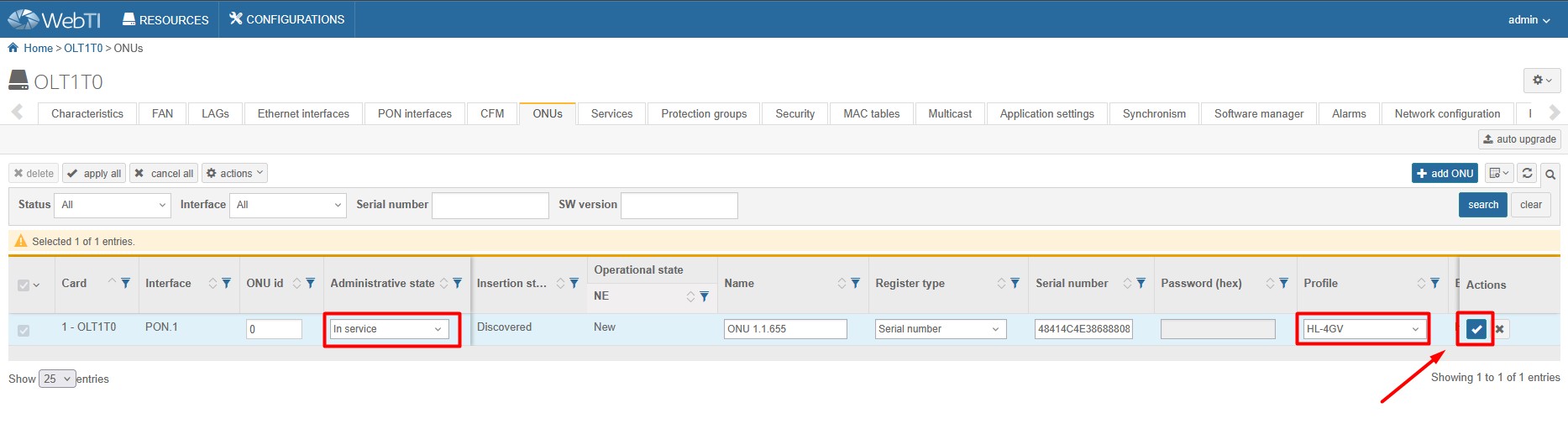 2. Add ONT to GPON port