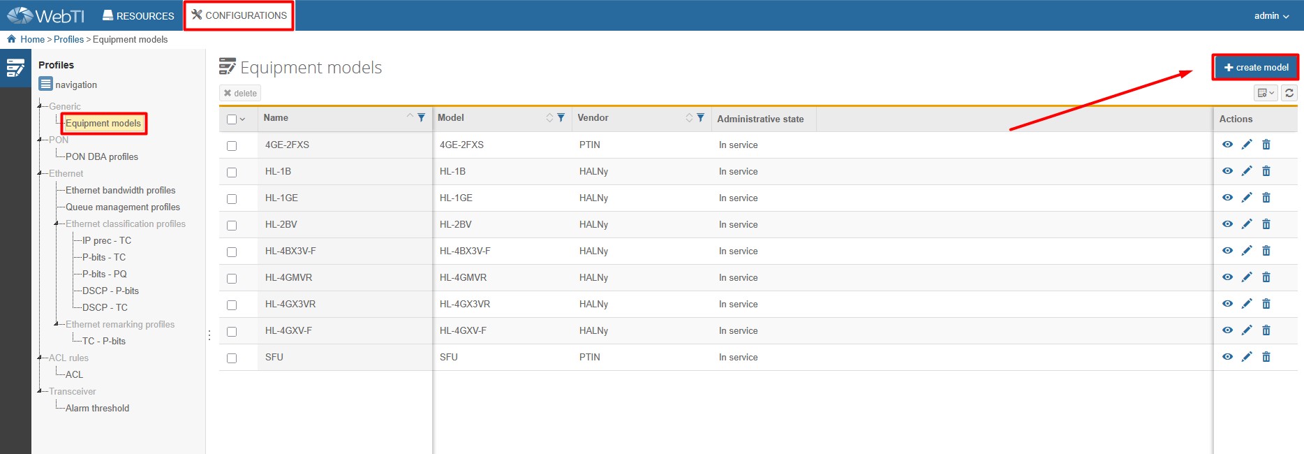 (CONFIGURATIONS > GENERIC > EQUIPMENT MODELS > CREATE MODEL)