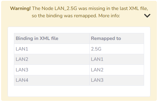 In order to properly map 2.5G LAN port via XML, you can use <LAN_2.5G> node in <WAN> tree.