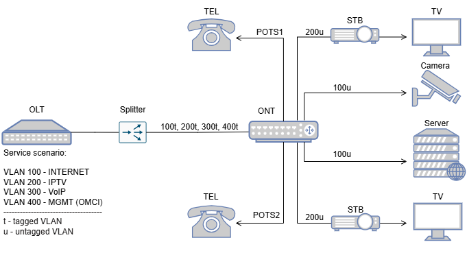 8. ONT Configuration (QinQ – INTERNET, VOIP, IPTV – restricted c-VLANs)