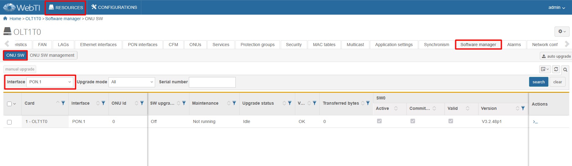 5. Go to ONU SW subpage and select PON interface, that your ONT is connected to.