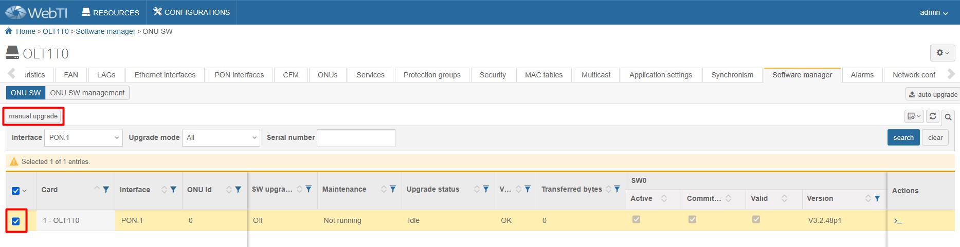 6. Select your ONT and click on « manual upgrade ».