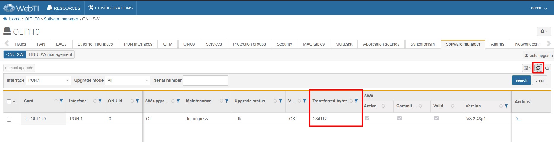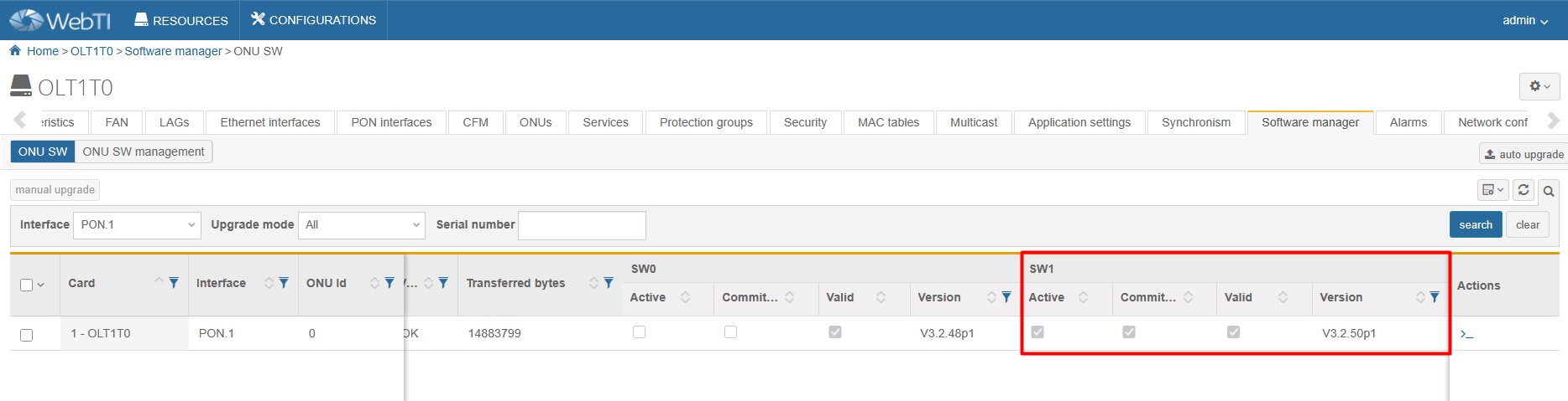 Upgrade procedure on ALTICE OLT1T0